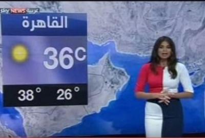 ظهرت مذيعة فضائية “سكاى نيوز عربية” خلال تقديمها نشرة أخبار الطقس أمس الاثنين، وهي ترتدي زيًا بألوان علم مصر، وذلك بالتزامن مع قرب افتتاح قناة السويس الجديدة.