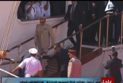 يذكر أن السيسي ارتدى البذلة العسكرية خلال توجهه إلى منصة افتتاح قناة السويس، والتي من المنتظر أن يطلق منها إشارة بدء تشغيل القناة، لكنه استبدلها بعد ذلك بالبدلة المدنية خلال استقباله لرؤساء وزعماء العالم، المشاركين في الاحتفال.