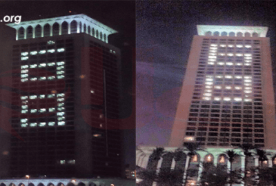 بعدما أضاءت وزارة الخارجية مقرها الشهير بكورنيش النيل بتاريخ موعد افتتاح قناة السويس الجديدة اليوم 6 اغسطس عبر إنارة مكاتبها بما يظهر تاريخ افتتاح القناة، أطفأت أنوار أحد المكاتب ليتحول التاريخ المضاء إلي 6/9 وهو ما اثار جدل واسع عبر رواد مواقع التواصل الاجتماعي خلال الساعات الماضية.