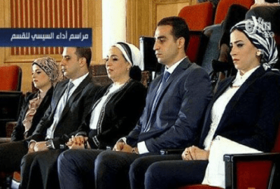ظهرت قرينة الرئيس عبد الفتاح السيسي، وأسرته خلال الحفل المسائي، الذي أقيم ضمن فاعليات الاحتفال بافتتاح قناة السويس الجديدة، اليوم الخميس، 6 أغسطس.