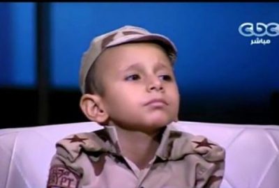 ظهر الطفل عمر صلاح المصاب بالسرطان -الذي رافق الرئيس عبدالفتاح السيسي على يخت المحروسة أثناء افتتاح قناة السويس- نائمًا خلال استضافة رولا خرسا له في برنامجها على قناة ”LTC”.