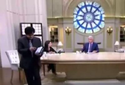 ليرد عليه الإبراشي منفعلا : ” لو أنت متأفف فنحن أكثر تأففا من وجودك .” وبعدها انسحب صاحب محلات الحسن والحسين معتذرا عن استكمال الحلقة.