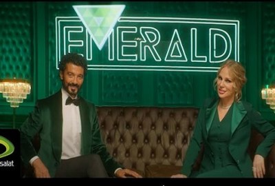 وخلال الإعلان ظهر “النبوي” و”رضا” وهما يقومان بعرض استعراضي ويقومان بالغناء، مشيران إلى مزايا نظام “Emerald” الذي يوفر إنترنت ودقائق ومزايا مشاهدة المباريات الرياضية والأفلام والموسيقى، بجانب مزايا الرسائل والمحادثات.
