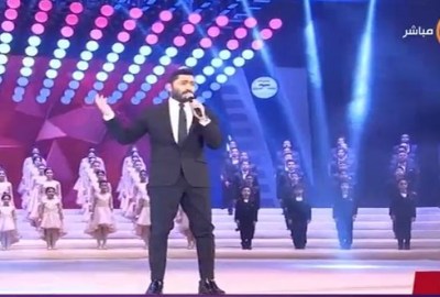 قدم الفنان تامر حسني أغنية خلال احتفالية القوات المسلحة بنصر أكتوبر المجيد، بحضور الرئيس عبد الفتاح السيسي.