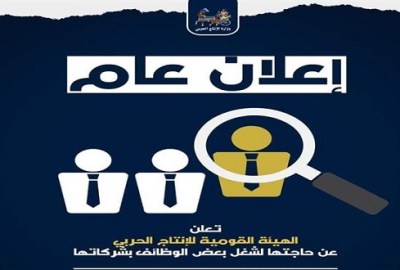 أعلنت الهيئة القومية للإنتاج الحربي، حاجتها لشغل بعض الوظائف في شركاتها وفقًا للمؤهلات والتخصصات والشروط الآتية:
