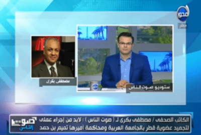 وأضاف بكري خلال مداخلته الهاتفية مع الإعلامي هيثم سعودي، ببرنامج “صوت الناس” على قناة “المحور”، بأنه لابد من إجراء عملي لتجميد عضوية قطر بالجامعة العربية ومحاكمة أميرها تميم بن حمد.
