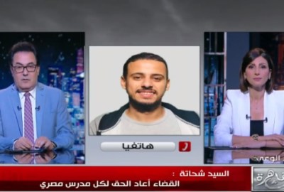 قال “شحاتة”خلال مداخلة هاتفية ببرنامج “حديث القاهرة” مع الإعلامي خيري رمضان والإعلامية كريمة عوض المذاع عبر قناة “القاهرة والناس”، إن سبب الأزمة كان مشاجرة بين طالبين في الصف السادس الابتدائي وجاء أحدهم يشكوا له، مضيفا: “فقمت بتعنيف الطالب المخطئ ولكنه رد بأسلوب غير لائق فقمت بإرساله للأخصائية الاجتماعية وأكملت الحصة الأولي”.