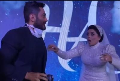 نشر الفنان تامر حسني فيديو عبر حسابه على موقع تبادل الصور والفيديوهات “إنستجرام”، وهو يفاجئ عروسان أثناء زفافهما.