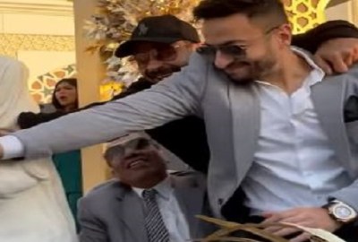 شهد عقد قران اليوتيوبر علي غزلان وفرح شعبان ملكة جمال مصر 2017، مساء الجمعة، موقف طريف خلال الحفل بين الفنان حمادة هلال والفنان محمد نجاتي.