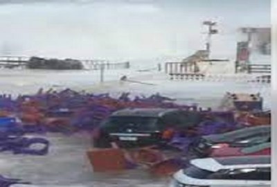وظهر خلال مقطع فيديو متداول على مواقع التواصل الاجتماعي تجاوز مياه البحر الحواجز لتحطم في طريقها عشرات المقاعد التي وضعت لأعضاء النادي قرب الشاطئ وصولا إلى غرق ساحة انتظار السيارات وأروقة النادي.