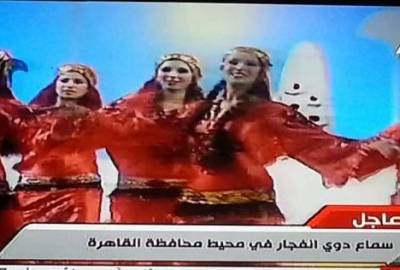 وتداول النشطاء بعض الصور التي تظهر استمرار التلفزيون في إذاعة الأغاني والرقصات الاستعراضية، مكتفيًا بنقل الأخبارعن طريق “شريط العواجل” على الشريط السفلي لشاشاته، دون وجود تغطية فعالة لما يجري.
