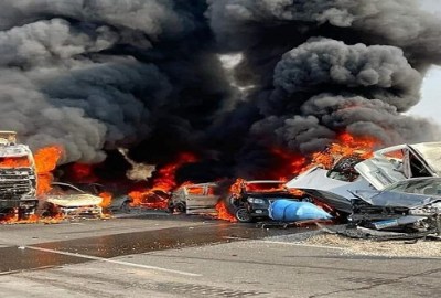 أُخطرت النيابة العامة ظهيرةَ اليومِ الأربعاء 5 يناير الجاري بوقوع حادث مروري بالطريق الأوسطي اتجاه الجيزة -بدائرة حلوان- باصطدام سيارة نقل تجرّ مقطورة بثلاث عشرة سيارة كانت متوقفة في الطريق لإزالة آثار حادث سابق به، واندفعت السيارة المتسببة في الحادث بسرعة وفوجئت بتوقف السيارات عند أحد المنحنيات فاختلت عجلة القيادة من سائقها واصطدمت بالسيارات المتوقفة مما أسفر عن اشتعال ثماني سيارات منها -اشتعل بعضها كليًّا وبعضها جزئيًّا- ووفاة شخص وإصابة ثمانية آخرين، وأنه قد تم التحفظ على قائد السيارة النقل المتسببة في الحادث ونقل المصابين للمستشفيات لعلاجهم، فتولت النيابة العامة التحقيقات.