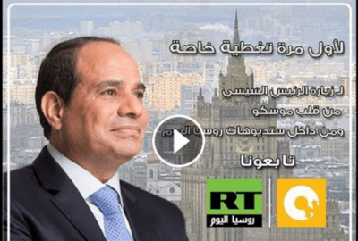 أعلنت قناة ontv، عن تقديم تغطية خاصة لزيارة الرئيس عبد الفتاح السيسي، بالتعاون مع قناة “روسيا اليوم”، حيث ستقدم تغطيات مباشرة لوقائع الزيارة، من داخل استديوهات RT بموسكو.