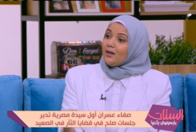 كشفت صفاء عسران، أول سيدة مصرية تدير جلسات الصلح في قضايا الثأر بالصعيد، أنها تعمل على حل أزمة الثأر لأنه دمر عائلات في الصعيد، مؤكدة على حضورها أول صلح في محافظة قنا في قرية دشنا.