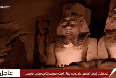 شهدت مدينة أسوان اليوم، ظاهرة تعامد الشمس على وجه تمثال رمسيس الثاني بمعبد أبو سمبل، تلك الظاهرة التي تتكرر مرتين كل عام في يومي 22 فبراير و 22 أكتوبر.