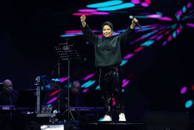 ظهرت شيرين بملابس “كاجوال” على المسرح حيث ارتدت “سويت شيرت” رياضي وبنطال جلد، وحذاء رياضي، وتفاعلت مع الجمهور على أغنياتها الجديدة والقديمة، التي قدمتها خلال الحفل.