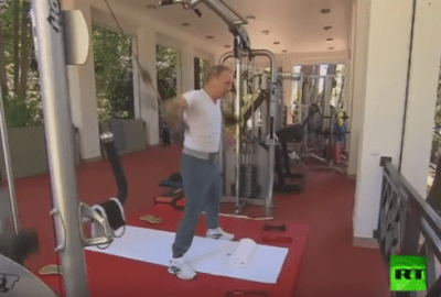 أجرى الرئيس الروسي فلاديمير بوتين برفقة رئيس الوزراء دميتري مدفيديف بعض التمرينات الرياضية في المقر الرئاسي الصيفي في منتجع سوتشي على ضفاف البحر الأسود.