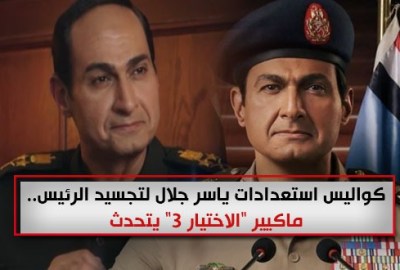 تابع: “كنا نعتمد في المكياج على صور من الحدث نفسه الذي ظهر به الرئيس ونفس الزمن، حتى نعمل بها على شكل ياسر جلال”.