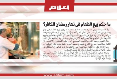 وجاء نص الفتوى التي قالها الفقيه السوري الشيخ محمد صالح المنجد، كالآتي: “رمضان لمن علم أو غلب على الظن أنه يأكله نهارا، إلا لمريض أو مسافر ونحوهما من أهل الأعذار، ولا فرق في ذلك بين المسلم والكافر؛ لأن الكفار مخاطبون بفروع الشريعة على الراجح، فلا يجوز لهم الأكل في نهار رمضان، ولا إعانتهم على ذلك”.