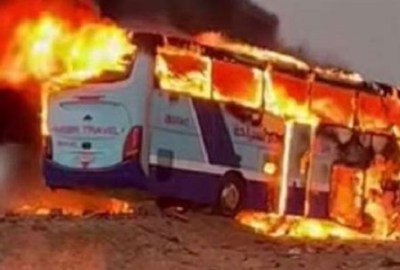 وأفاد البلاغ الذى تلقاه مرفق الاسعاف صباح اليوم، بأن حادث التصادم وقع بين سيارة نقل محملة بالأسماك وأتوبيس سياحى بطريق أسوان – أبوسمبل، ما أدى الى احتراق الاتوبيس، ونتج عن ذلك وفاة 5 أجانب و5 مصريين، وجرى الدفع بسيارات الإسعاف لإنقاذ الضحايا.