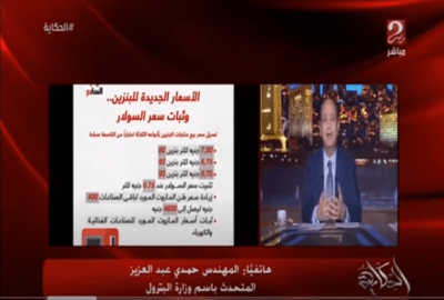 أضاف “عبد العزيز” خلال مداخلة هاتفية أجراها مساء أمس ببرنامج الحكاية مع الإعلامي عمرو أديب على شاشة “mbc مصر 2″، أن اللجنة تقوم بتحديد السعر بناءً على معادلة سعرية، المعادلة قائمة على سعر البترول الخام في السوق العالمي، وسعر الصرف.