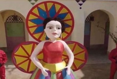 أردف أنه طُلب منه الربط بين دمية المسلسل الأصلية وعروسة المولد المصرية، موضحا أنهم طلبوا أن يكون حجم العروسة ضخما بارتفاع 4 أمتار تقريبا “3.70 متر” وتتحرك بميكانيزم معين.