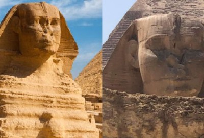 انتشرت صور على مواقع التواصل الاجتماعي، السبت الماضي، لتمثال أبو الهول يبدو خلالها وأنه مغمض العينين وكأنه نائم، مما أثار جدلا واسعا، وكل تناول الموضوع بطريقته.