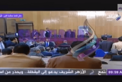 لكن التليفزيون المصري فاجئ القاضي بالاعتذار عن عرض جميع مرافعات الدفاع بسبب عدم وجود وقت لعرض كل ما يحدث في المحكمة وهو ما جعل رئيس المحكمة المستشار الرشيدي يعلن عن إتاحة حق التواجد بالكاميرات داخل المحكمة للقناة الفضائية التي تقوم بنقل كافة الجلسات مع شرط إتاحتها لباقي المحطات الفضائية.