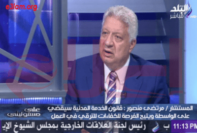 وأضاف “منصور” خلال استضافته في برنامج “على مسئوليتي” الذي يقدمه أحمد موسى على قناة صدى البلد قائلاً: “قانون الخدمة المدنية منع الواسطة، وأى موظف هينزل يتظاهر ضد مؤسسات الدولة ويمتنع عن العمل لو اتطبق القانون هيتحبس من 6 شهور لست سنين”.