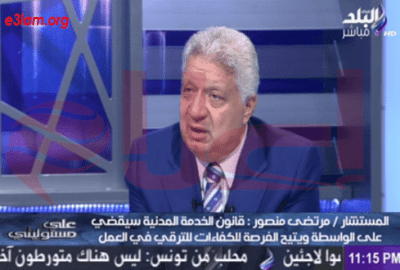 قال المستشار مرتضى منصور رئيس نادي الزمالك، إنه اقترح على المهندس إبراهيم محلب رئيس الوزراء، بأن يكون وزيرًا للأدب في حكومته دون مقابل، مضيفًا: “الناس مبتجيش إلا كده”.