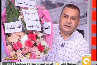 ظهر الإعلامي “جابر القرموطي”، خلال حلقة مساء اليوم، حاملاً “بوكيه ورد”، للتعبير عن تقديره لمجهودات الجيش والشرطة في محاربة الإرهاب.