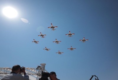 وقد حلقت الطائرات المشاركة، أثناء العرض، في سماء القاهرة الكبرى في عروض جوية مبهرة، حيث شارك في العرض فريق النسور السوداء من كوريا الجنوبية (Black Eagles) بعدد من الطائرات التي نفذت عدداً من العروض الجوية المتميزة بالتزامن مع تقديم فريق النجوم الفضية المصري (Silver Stars) وفريق طائرات الهيل جازيل المصري (حورس) عروضاً جوية مبهرة، وكذا تقديم عناصر من قوات المظلات المصرية عدد من العروض أثناء فعاليات المهرجان.