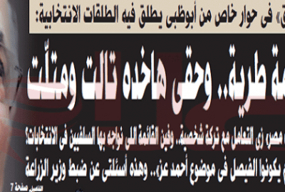 – خبرتى أقدم من ده كله، فأرجو المسئولين أن يراعوا ويعرفوا إنى مش سهل ومش لقمة طرية، وحقى هاخده تالت ومتلت، النهاردة بكرة بعده، والأيام بيننا.
