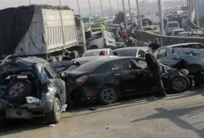 وقع حادث مروري مروع، اليوم الثلاثاء، على الطريق الدائري حيث دهست تريلا نقل ثقيل أكثر من 7 سيارات أعلى الطريق الدائري اتجاه ميدان الرماية القادم من طريق الواحات.