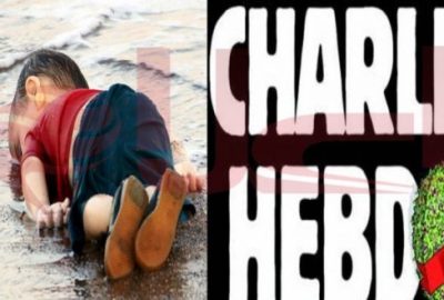 حيث نشرت في عددها الأخير ، رسمتين تسخران من حادث غرق الطفل السورى إيلان كردى علي السواحل التركية.