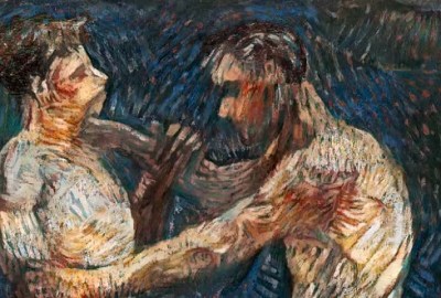 تُظهر اللوحة، التي تجسد صورة اثنين من المصارعين، شخصين يخوضان معركة مع بقع حمراء على خلفية زرقاء، ومن المقرر أن يتم عرضها في معرض الفنون في متحف اللوفر في بداية سبتمبر.