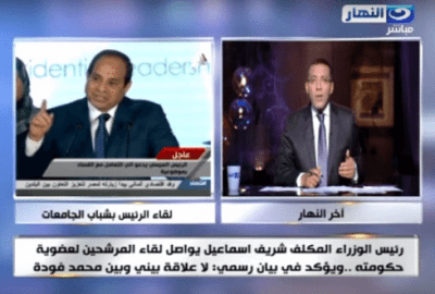 علق الكاتب الصحفي، خالد صلاح، على كلمة الرئيس عبد الفتاح السيسي، التي ألقاها في أسبوع شباب الجامعات بمدينة الإسماعيلية، والتي انتقد فيها أداء الإعلام المصري، في تناوله لقضية “رشوة وزارة الزراعة”، حيث قال صلاح: “الإعلام يا فندم كان محظور عليه النشر”.