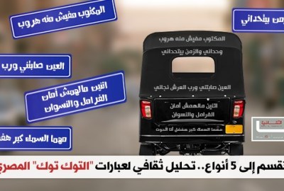 في الوقت الذي يحدث فيه جدلا واسعا حول الـ”توكتوك”، في وجوده كـ وسيلة للانتقال، وانتشاره بـ كثرة في المناطق الشعبية، والأقاليم، ووجود الكثير منه بطرق غير شرعية وبدون تراخيص رسمية، نشرت مجلة “ميريت الثقافية” تحليلا ثقافيا للعبارات المكتوبة على ظهر الـ “توك توك”، ومدى تأثر هذه اللافتات بعصر الصورة.