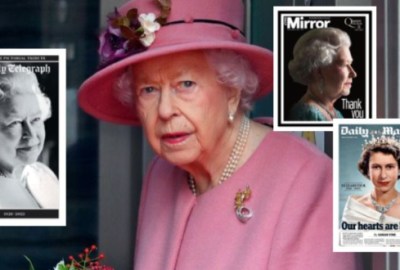 بعد وفاة الملكة إليزابيث الثانية، ملكة بريطانيا، تصدرت صورها صفحات وأغلفة المجلات والصحف حول العالم لا سيما البريطانية منها، مع عبارات لتوديع الملكة بعد حكم دام لأكثر من 70 عاما.