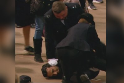 وأعلنت الحكومة البريطانية في وسائل الإعلام بعدها القبض عليه، محذرة المواطنين أن الانتظار في طابور المشيعيين للملكة قد يدوم الانتظار به لأكثر من 24 ساعة.