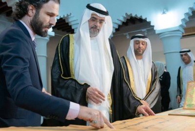 واستمع إلى شرح وافٍ حول المخطوطات القيّمة التي يضمها المعرض والتي تعود إلى ثمانينيات القرن الماضي ومعانيها ودلالاتها ومضامينها والتي أنجزها فنانون مبدعون من مختلف دول العالم.