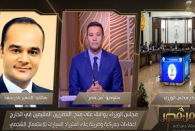 كشف السفير نادر سعد، المتحدث باسم مجلس الوزراء، تفاصيل موافقة الحكومة على استيراد المصريين بالخارج لسيارات معفاة من الضرائب.