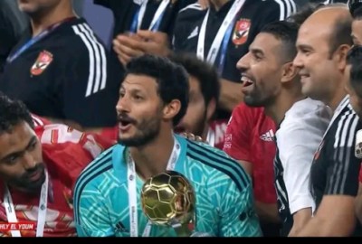 وحرص محمد الشناوي، قائد الفريق، على الإشارة لجماهير الأهلي لتحية مؤمن زكريا بعد أن جعله يحمل كأس البطولة مع باقي لاعبي الفريق.