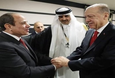 أفاد مراسل القاهرة الإخبارية في الدوحة، إن قمة مصرية تركية تجري الآن على هامش افتتاح كأس العالم في الدوحة بين الرئيس المصري عبد الفتاح السيسي ونظيره التركي رجب طيب أردوغان.