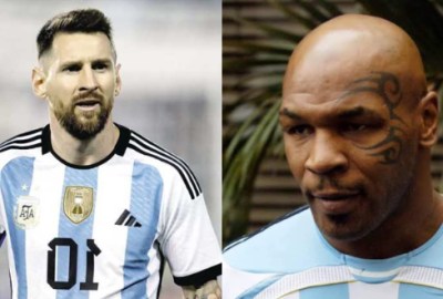 وبعد تهديد “ألفاريز” لميسي، دافع الملاكم العالمي مايك تايسون، عن ميسي قائلا: “شخص يدعى كانيلو ألفاريز هدد ميسي، إذا تجرأ على لمس ميسي سأضطر للذهاب إلى الحلبة مرة أخرى”.