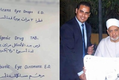 علق الطبيب معاذ عطيتو، طبيب العيون، على الروشتة التي كتبها بخط واضح والتي انتشرت على وسائل التواصل الاجتماعي بشكل كبير، وتظهر براعته في الكتابة باللغة العربية الفصحى.