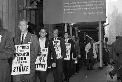في أزمة هي الأولى لها منذ سبعينيات القرن الماضي، تواجه صحيفة نيويورك تايمز الأمريكية أول توقف كبير عن العمل، وذلك بعد إعلان الصحفيين العمال والإداريين الإضراب عن العمل لمدة يوم كامل، للمطالبة بتحسين الأجور في ظل الارتفاعات المستمرة للأسعار.