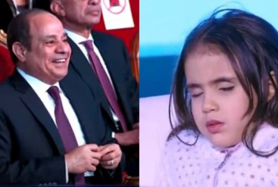 طالب الرئيس عبدالفتاح السيسي الإعلامي إبراهيم فايق، بترك إحدى الفتيات القادرات باختلاف وعدم إزعاجها بعد أن غالبها النوم على المنصة قائلا: “بنتنا اللي نامت دي سيبها.. أيوا سيبها يا سيدي هي مع ربنا بقى”.