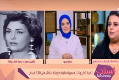 قالت في إتصال هاتفي مع برنامج “الستات مايعرفوش يكدبوا“، على قناة “CBC”، والذي قدمته إيمان عزالدين، ومنى عبدالغني إنها عاصرت حياة تحية كاريوكا وتعلمت منها الكثير، وقالت: “كانت متعاطفة جداً مع أي حد غلبان أو مظلوم وكانت بتحرص إنها تجيب حقه بكل قوة عندها، هي شخصية طيبة جداً وكان عندها استسلام غريب لكل حاجة”.