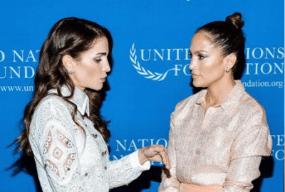 التقطت الفنانة جينيفر لوبيز، صورًا مع الملكة رانيا العبد الله، ملكة الأردن، خلال تواجدها بعشاء تابع للأمم المتحدة، حيث تم اختيار لوبيز في منصب “المدافعة الأولى عن حقوق المرأة والفتيات حول العالم”، التابع للمنظمة.